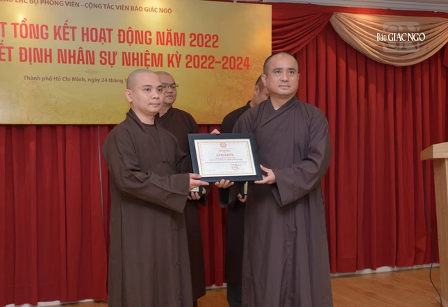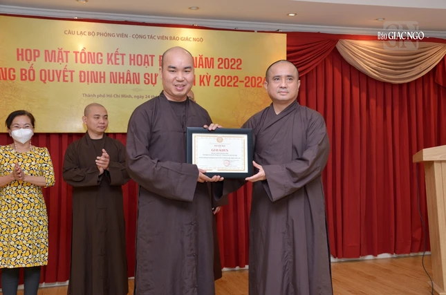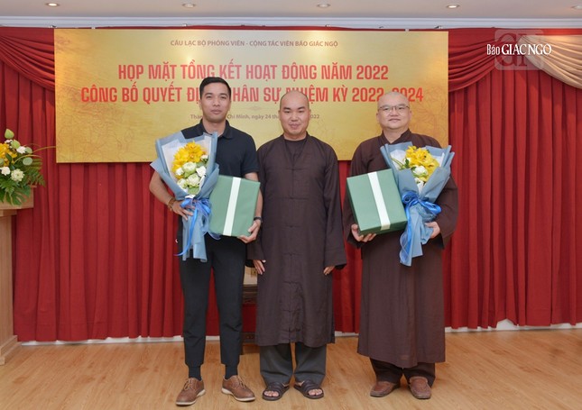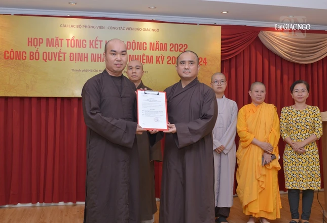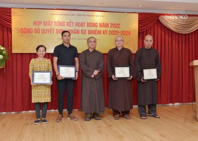 Dịp này, Ban Biên tập đã trao quyết định chuẩn y thành phần nhân sự Câu lạc bộ Phóng viên - Cộng tác viên Báo Giác Ngộ nhiệm kỳ 2022-2024, gồm 9 thành viên: Đại đức Thích Quảng Hậu, Chủ nhiệm; Đại đức Thích Nguyện Truyền, Phó Chủ nhiệm; Đại đức Thích Nguyên Tài, Thư ký; Cư sĩ Huỳnh Bích Đào, Phó Thư ký và các Ủy viên: Đại đức Thích Quảng An, Đại đức Thích Thiện Trí, Đại đức Thích Quảng Thiện, Sư cô Thích nữ Huệ Như (kiêm Thủ quỹ), Sư cô Thích nữ Liên Duyên.
