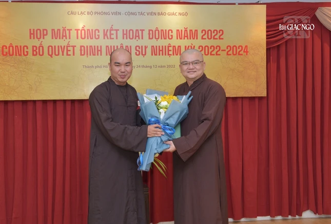 GNO - Sáng 24-12 , Câu lạc bộ Phóng viên - Cộng tác viên Báo Giác Ngộ tổ chức buổi họp mặt tổng kết chương trình hoạt động năm 2022 và công bố quyết định nhân sự nhiệm kỳ mới 2022-2024 tại tòa soạn Báo Giác Ngộ (85 Nguyễn Đình Chiểu, quận 3, TP.HCM) .