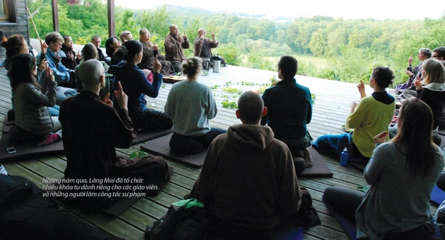 Đặc biệt, chương trình “Wake Up schools” (tạm dịch: Trường học tỉnh thức) của thiền sư đã và đang đào tạo cho hàng trăm giáo viên ở Việt Nam, Ấn Độ, châu Âu và Hoa Kỳ thông qua các khóa tu, các buổi giảng dạy, hội thảo và các buổi họp mặt hàng tháng được tổ chức trực tuyến trong suốt thời gian đại dịch hoành hành. Vào tháng 8 vừa qua, Tăng thân Làng Mai cùng với Trung tâm Nghiên cứu Phật giáo Barre tại Massachusetts đã tổ chức một khóa tu trực tuyến dành cho các giáo viên tại Hoa Kỳ.