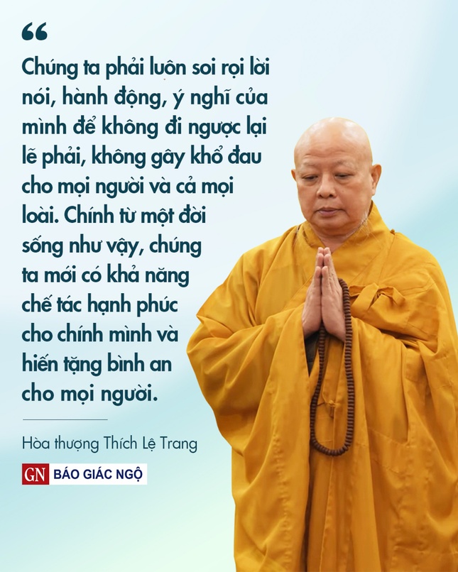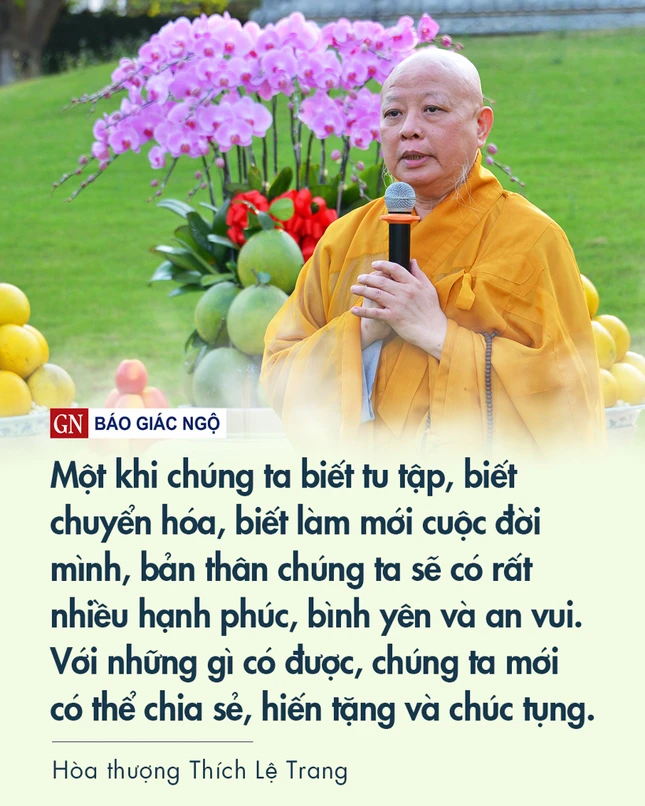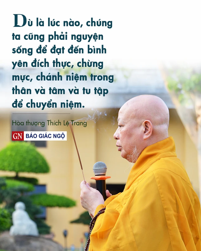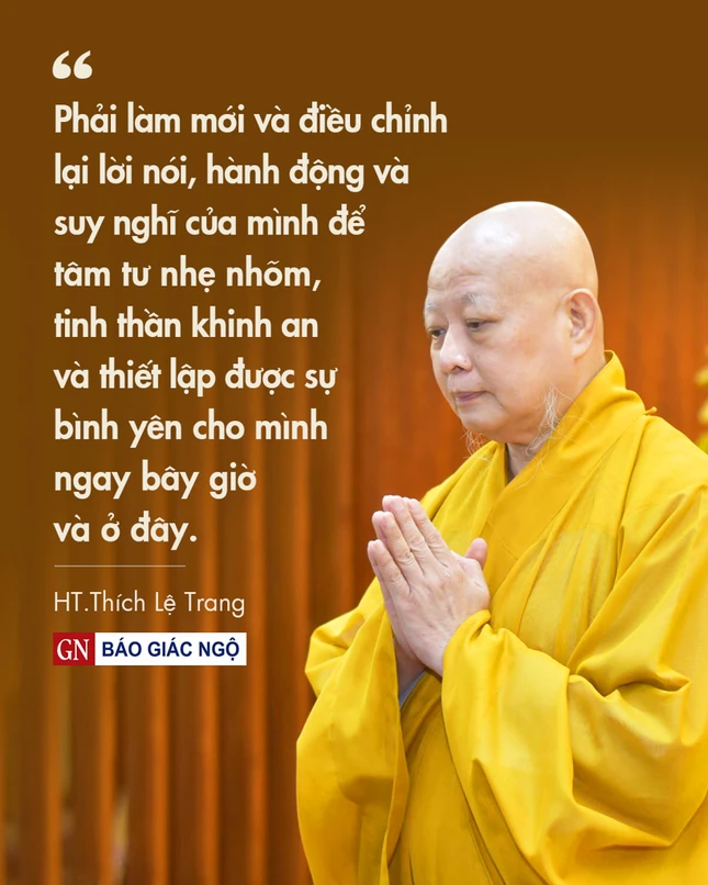 GNO - Để tìm thấy sự bình yên, mỗi người cần biết tu tập, chuyển hóa và xây dựng đời sống tâm linh cho chính mình. Đây là thông điệp được trích dẫn từ pháp ngữ của Hòa thượng Thích Lệ Trang, Phó Chủ tịch Hội đồng Trị sự, Trưởng ban Nghi lễ T.Ư, Trưởng ban Trị sự GHPGVN TP.HCM.