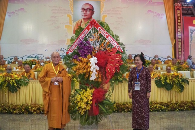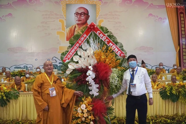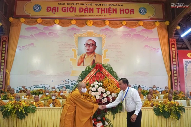 Phát biểu chúc mừng, ông Võ Tấn Đức đã điểm qua những thành tựu Phật giáo tỉnh Đồng Nai từ khi tách tỉnh đến nay. Từ số lượng chùa chiền và Tăng, Ni tương đối ít, nhưng đến nay đã phát triển với hơn 500 tự viện; hơn 6.000 Tăng, Ni. Phật giáo tỉnh đã khai mở 18 Đại giới đàn và trao truyền Giới pháp cho hơn 230.000 giới tử Tăng, Ni. Ông Phó Chủ tịch UBND tỉnh cũng mong muốn các giới tử luôn vâng giữ giới pháp đã thọ, để làm lợi đạo, ích đời trên tình thần phụng đạo, giúp đời, góp phần xây dựng đạo pháp và dân tộc.