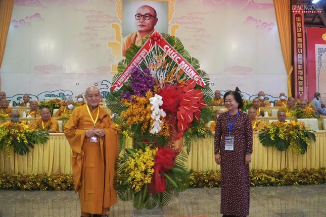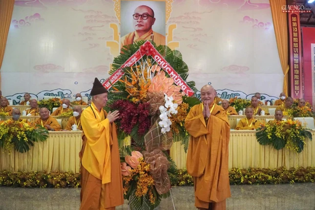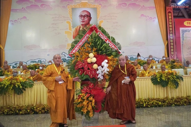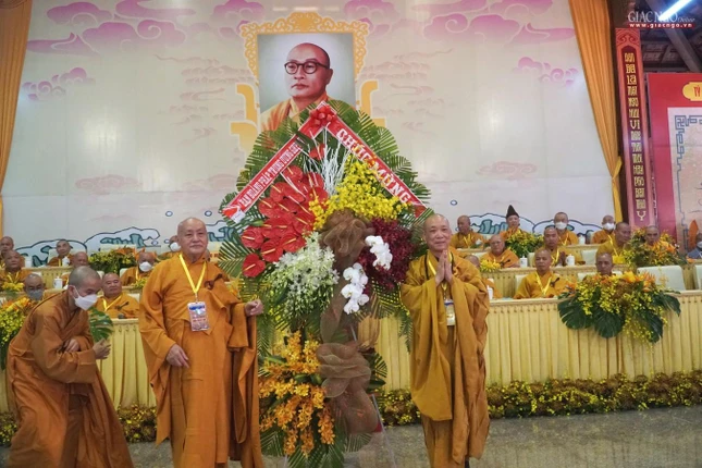 Dịp này, có nhiều lẵng hoa và quà của các cấp Giáo hội và cơ quan ban ngành gửi đến khánh thọ Trưởng lão Hòa thượng Thích Thanh Từ, Phó Pháp chủ GHPGVN và chúc mừng Đại giới đàn Thiện Hoa thành công viên mãn.