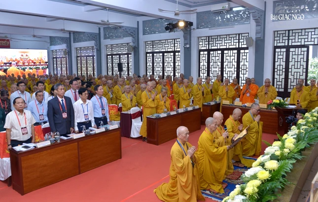 Hình ảnh nghi thức suy tôn tại Hội nghị kỳ 3 - Khóa IX Hội đồng Trị sự GHPGVN, sáng nay, 15-1: