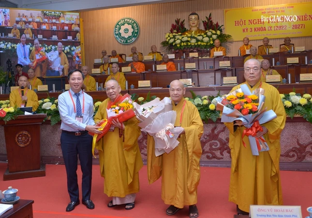 Thay mặt Hội đồng Trị sự, tại Hội nghị kỳ 3 - Khóa IX, chư tôn đức đại diện Hội đồng Trị sự cử hành nghi thức suy tôn, suy cử chư vị Trưởng lão tham gia Hội đồng Chứng minh theo quy định của Hiến chương và yêu cầu thực tế của việc kết nối giữa hai Hội đồng nhằm phát huy sức mạnh đoàn kết của GHPGVN.