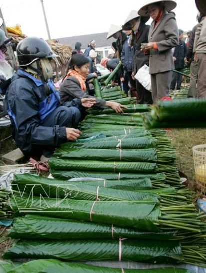 Lá dong gói bánh chưng - mặt hàng không thể thiếu trong các phiên chợ áp Tết.
