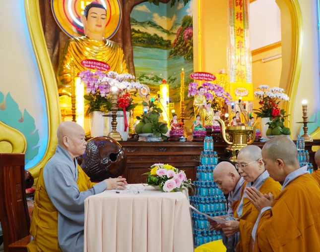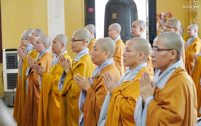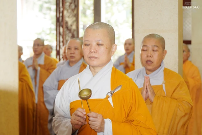 Buổi lễ trang nghiêm với nghi thức lễ Tổ, niêm hương bạch Phật, chư Ni cử hành lễ sám hối và thực hiện tác pháp Tự tứ.
