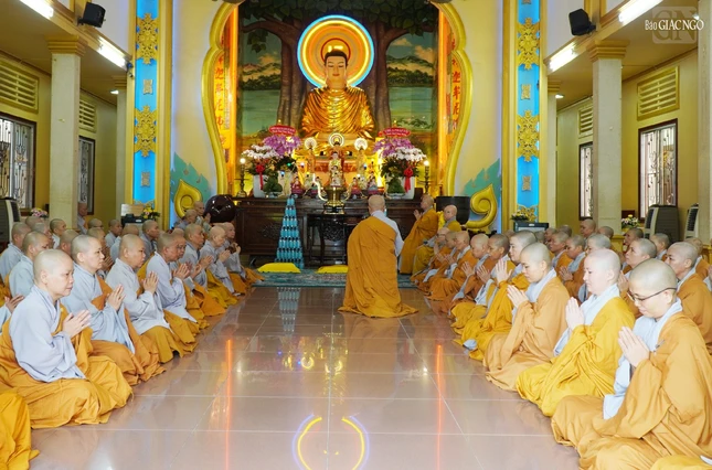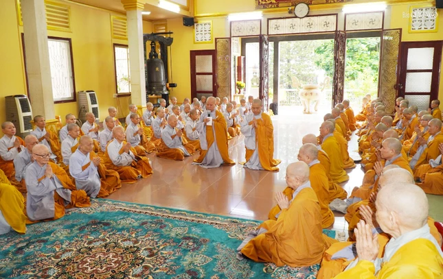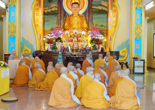 GNO - Tại trường hạ chùa Từ Nghiêm (Q.10, TP.HCM), sáng 16-7-Quý Mão (31-8-2023), chư hành giả an cư trang nghiêm cử hành nghi thức tác pháp Tự tứ, kết thúc khóa An cư kiết hạ Phật lịch 2567.