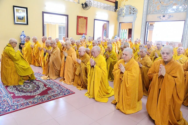 Tại buổi lễ, chư Tăng phương tiện thực hiện nghi thức đại chúng bạch Tự tứ, kết thúc khóa An cư kiết hạ Phật lịch 2569.