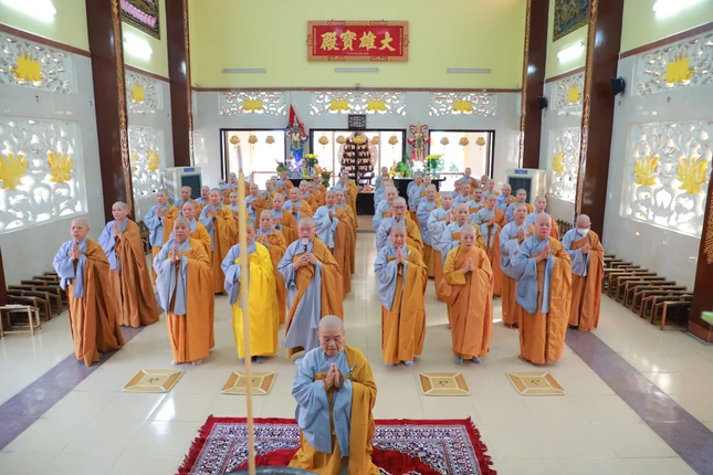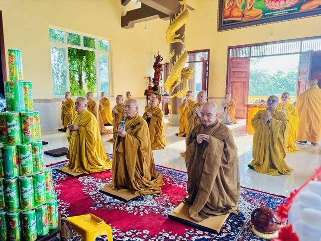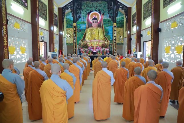 Theo đó, sáng nay, 25-3 (16-2-Giáp Thìn), chư tôn đức Tăng đã vân tập tại chùa Pháp Chơn (xã Hưng Long, H.Bình Chánh) và chư Ni vân tập về chùa Phước Thiện (xã Bình Chánh, H.Bình Chánh) để cử hành nghi thức Bố-tát, tụng giới chung.
