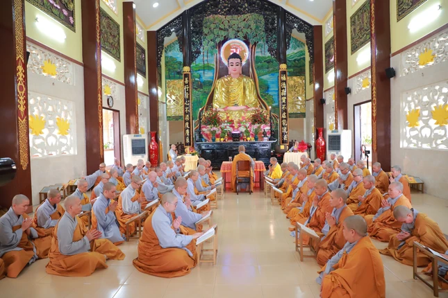 GNO - Theo sự thống nhất chỉ đạo của Thường trực Ban Trị sự GHPGVN H.Bình Chánh, hàng tháng vào mùng 2 và 16 âm lịch, chư tôn đức Tăng, Ni H.Bình Chánh đều vân tập về các điểm tập trung để trùng tụng giới luật.