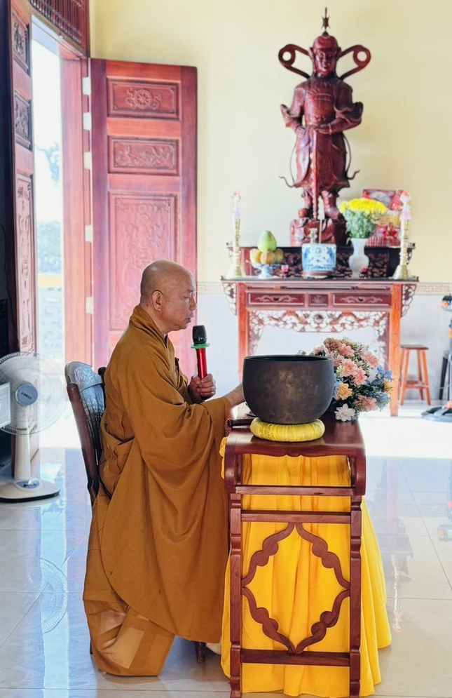 * Tại chùa Pháp Chơn, Hòa thượng Thích Trực Giáo, giáo phẩm chứng minh Ban Trị sự GHPGVN H.Bình Chánh, xướng lễ cùng đại chúng đồng xưng tán đảnh lễ Tam bảo, tụng chú Đại bi, sám hối thanh tịnh tam nghiệp.