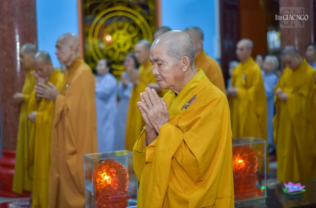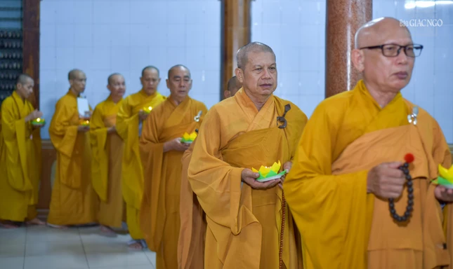 GNO - Nhân ngày vía Bồ-tát Quán Thế Âm thành đạo (19-6-Âm lịch), chư Tăng, Phật tử tổ đình Vạn Thọ trang nghiêm tổ chức khóa lễ tụng kinh, thiền hành và thắp nến tưởng niệm, cùng nhau nhắc nhở bản thân thực hành những hạnh nguyện cao cả của vị Bồ-tát này.
