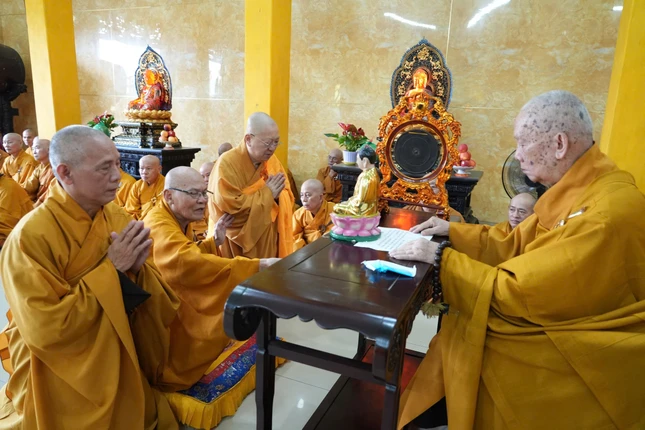 GNO - Chiều nay, 15-8, chư tôn đức Tăng Thường trực Ban Trị sự GHPGVN Q.6 và chư hành giả an cư tại hạ trường chùa Tuyền Lâm (Q.6, TP.HCM) đã trang nghiêm tổ chức Lễ Tự tứ kết thúc khóa An cư kiết hạ Phật lịch 2568.