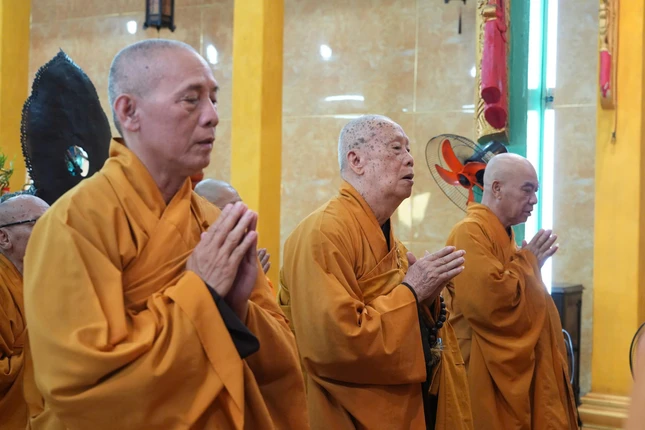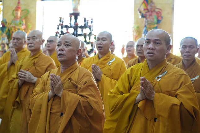Tại chánh điện, chư tôn đức chứng minh đã niêm hương bạch Phật, đại chúng xưng tán hồng danh Đức Phật Bổn Sư Thích Ca Mâu Ni, đồng tụng thời kinh.