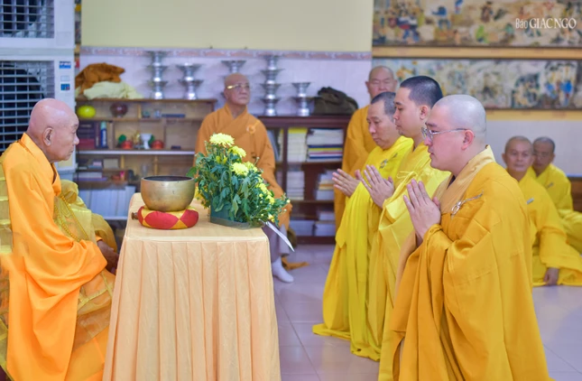 GNO - Chiều nay, 12-7-Ất Tỵ (3-9), chư Tăng tại các điểm an cư trên địa bàn phường Phú Định, Bình Đông và Chánh Hưng đã trở về chùa Long Hoa (P.Phú Định, TP.HCM) để thực hiện nghi thức tác pháp Tự tứ, kết thúc mùa An cư kiết hạ Phật lịch 2569.