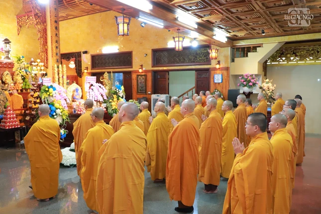 Chư tôn giáo phẩm niêm hương lễ Tổ tại tổ đường tu viện Phước Minh |