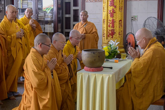 Sau khi niêm hương, đảnh lễ Tam bảo, toàn thể đại chúng đã tuần tự tác pháp Tự tứ mãn hạ sau 3 tháng trau dồi giới đức, trí tuệ và nuôi dưỡng lòng từ để hành đạo giúp đời.