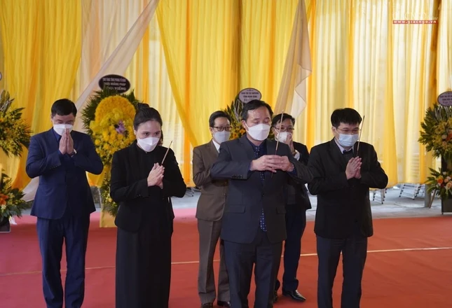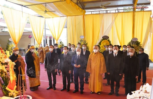 Bà Trần Thị Minh Nga, Phó Trưởng ban Tôn giáo Chính phủ dẫn đầu đoàn Ban Tôn giáo Chính phủ đã đến viếng tang và phân ưu cùng GHPGVN.