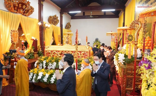 GNO - Hiện diện tại chùa Hòa Lạc (huyện Kim Sơn, tỉnh Ninh Bình), nơi tôn trí kim quan Đại lão Hòa thượng Thích Thanh Đàm, Phó Pháp chủ GHPGVN tân viên tịch, nhiều đoàn lãnh đạo cao cấp trung ương, các tỉnh thành đã dâng hương tưởng niệm.