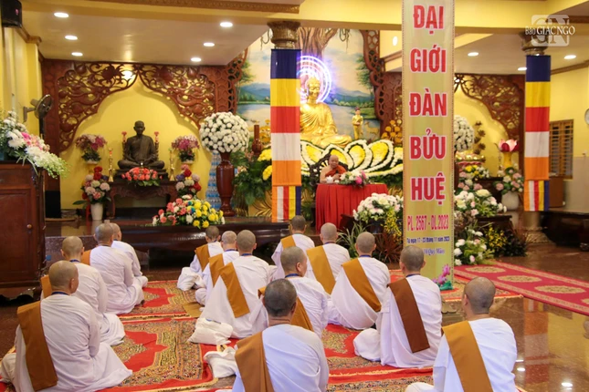 Giới tử chú tâm lắng nghe lời giáo giới của chư tôn giáo phẩm |