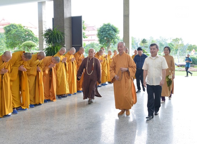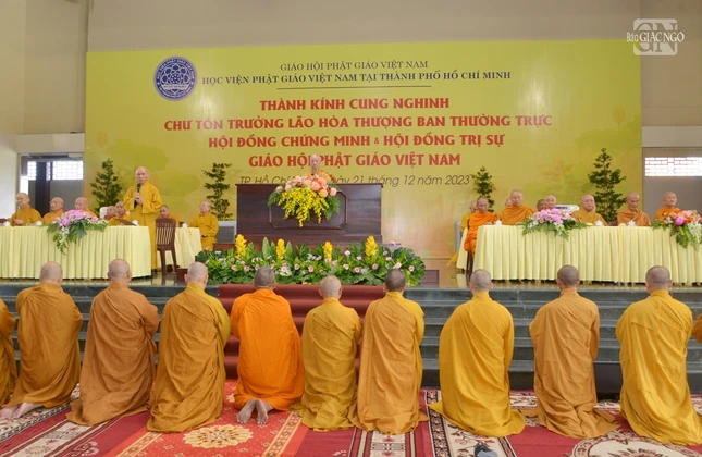 Hiện diện có Đại lão Hòa thượng Thích Trí Quảng, Pháp chủ GHPGVN, Viện trưởng Học viện Phật giáo VN tại TP.HCM; chư vị Phó Pháp chủ: Trưởng lão Hòa thượng Chau Ty, Trưởng lão Hoà thượng Thích Giác Quang, Trưởng lão Hoà thượng Viên Minh; chư vị giáo phẩm Ủy viên Thường trực, Thành viên Hội đồng Chứng minh; Trưởng lão Hòa thượng Thích Thiện Nhơn, Chủ tịch Hội đồng Trị sự; chư tôn đức Ban Thường trực Hội đồng Trị sự.