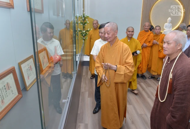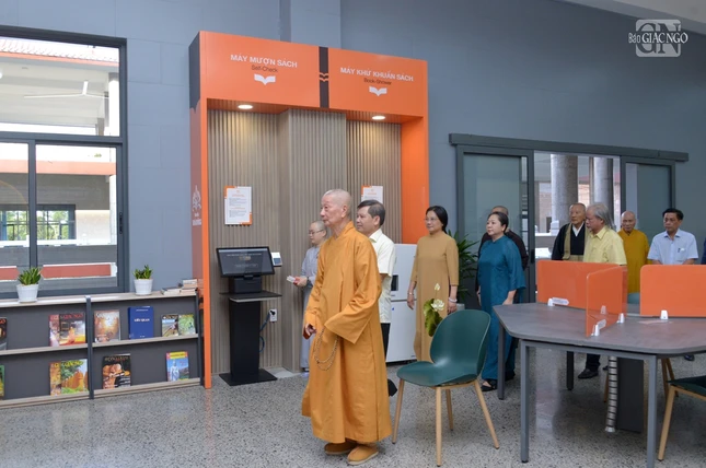 Khép lại buổi thăm hỏi, chư tôn đức Hội đồng Điều hành Học viện đã cung thỉnh chư tôn giáo phẩm quang lâm tham quan Thư viện Trí Quảng nằm trong khuôn viên cơ sở II Học viện Phật giáo VN tại TP.HCM.