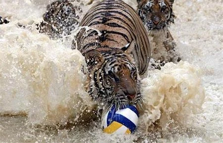 Đàn cọp được thả tự do chơi đùa vào mỗi chiều |