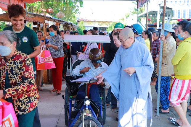 Sáng 25-8, chùa Pháp Hưng (H.Cần Giuộc, Long An) đã tổ chức "phiên chợ 0 đồng" đến bà con khó khăn nhân mùa Vu lan.
