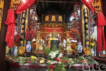 Trong đình, ngoài bát bửu, lư hương đồng, long ngai, bài vị thì đình Bối Hà còn có đôi hạc đứng vững chắc trên lưng rùa.