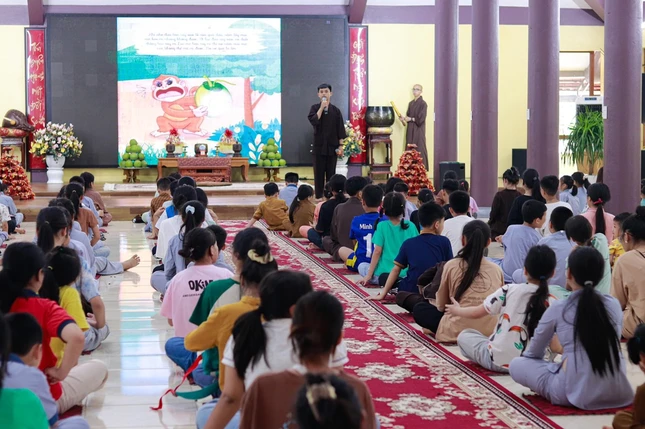 Không chỉ riêng các em thiếu nhi mà chính bố mẹ - những người đồng hành cùng các em cũng rất hăng say tu học, hoan hỷ tham gia dự thính thời khóa. Một số vị khác thì xung phong hỗ trợ lớp học, phụ giúp công tác chăm sóc các em.