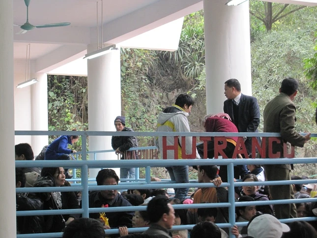 Với giá vé 40.000 đồng, đường đến với cáp treo cũng chật vật vất vả như leo núi. Đông người xếp hàng đến độ nhà quản lý phải ngừng bán vé cả tiếng đồng hồ để giải toả tình trạng quá tải.