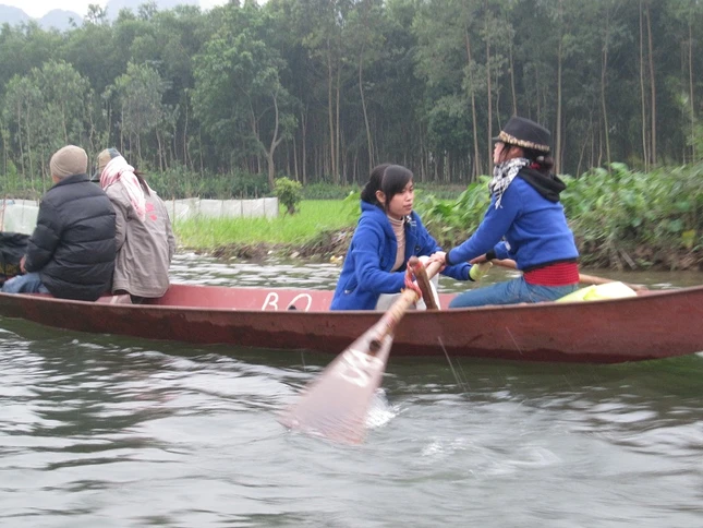 Thời tiết giá lạnh, gió rét không làm du khách mất đi cảm giác hào hứng khi đi đò qua suối Yến.