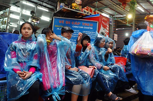 Ga cáp treo chật cứng người. Hầu hết du khách đều phải xếp hàng hơn một giờ mới đặt được chân lên cabin cáp treo.