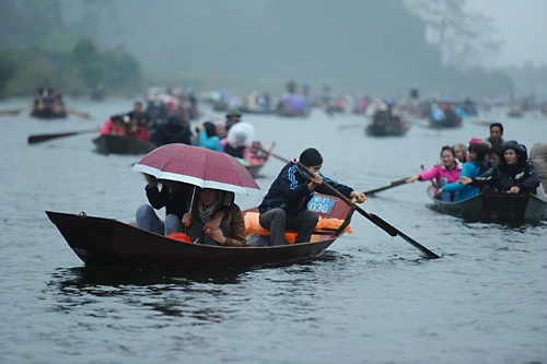 Sáng nay, mùng 6 Tết, dù trời mưa phùn nhưng hàng trăm nghìn người vẫn đổ về khu du lịch Hương Sơn (Mỹ Đức, Hà Nội) để làm lễ đầu năm. Ga cáp treo và đường bộ dẫn lên "Nam thiên đệ nhất động" đều trong cảnh chen lấn, ùn tắc.