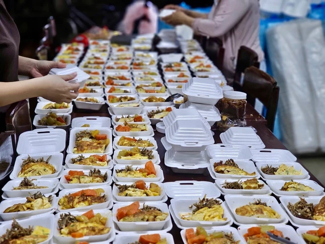 Khẩn trương chuẩn bị các suất cơm cứu trợ cho đồng bào vùng lũ tại Huế |