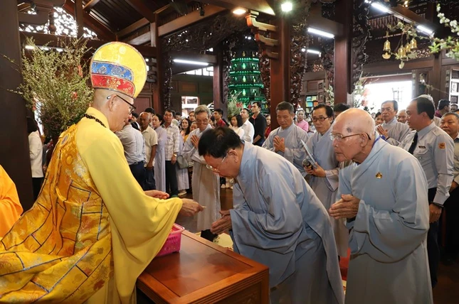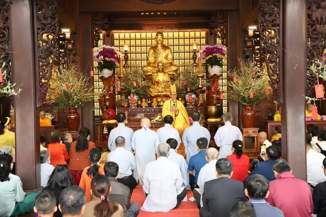 Dịp này, Hòa thượng Thích Châu Quang chúc phúc đến toàn thể hội chúng; mong muốn Phật tử đạo tràng sẽ đón nhận những niềm an vui, hỷ lạc của mùa Xuân Di Lặc mang lại, cùng nguồn năng lượng tích cực từ những hạnh nguyện cao quý của vị Phật tương lai.