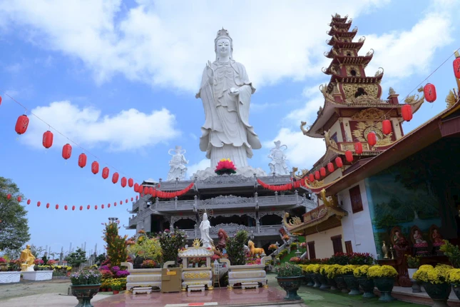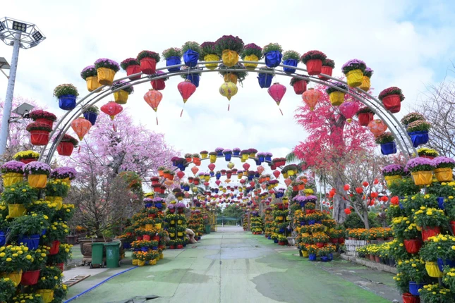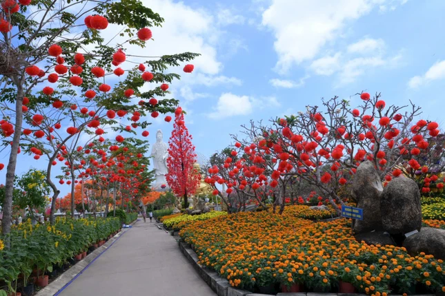 Một công trình thu hút sự chú ý của đông đảo Phật tử và người dân địa phương là cây cầu hạnh phúc dài gần 200 mét được thiết trí giữa lòng kênh, được trang trí thành một con đường xuân với nhiều cổng hoa liên hoàn, đèn trang trí và tiểu cảnh mềm mại, hứa hẹn trở thành điểm nhấn độc đáo trong mùa Tết năm nay.
