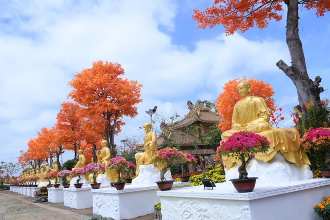 Song song với việc hoàn thiện linh vật, khuôn viên chùa được bài trí với các loại hoa đa sắc màu, như: vạn thọ, cát tường, cúc mâm xôi, cúc đại đóa, hoa giấy cùng các dòng lan như lan hồ điệp, nghinh xuân,... tạo nên không gian sinh động nhưng vẫn giữ được nét trang nghiêm chốn thiền môn.