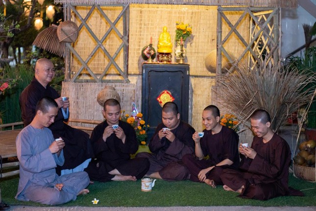 Để hoàn thành các công trình đón Xuân, vui Tết kịp thời, chư Tăng và Phật tử đã tích cực trong khâu trang trí. Những ngày cận Tết, nhiều đêm làm việc đến 1 - 2 giờ sáng. Nguyên liệu để làm nên những mô hình đón Tết chủ yếu là những chất liệu quen thuộc, thân thiện với môi trường.