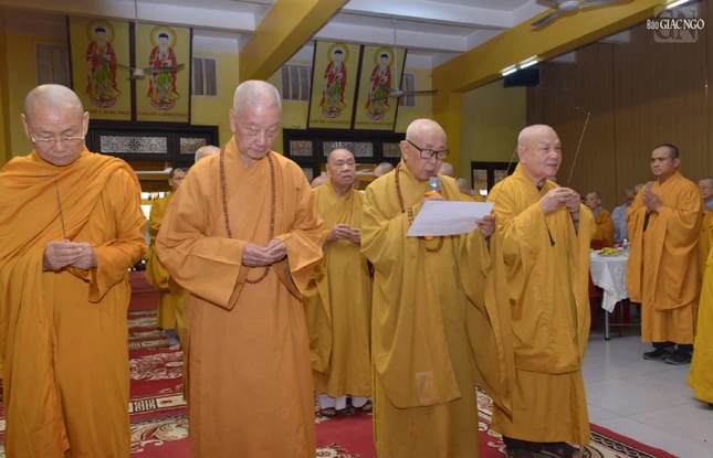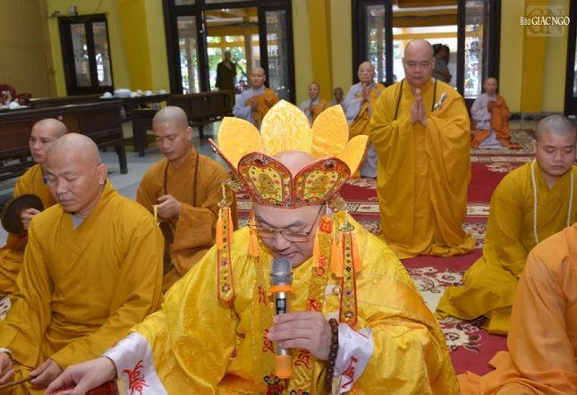 Thượng tọa Thích Giác Dũng thay mặt chư hành giả an cư, môn đồ đệ tử tác bạch |