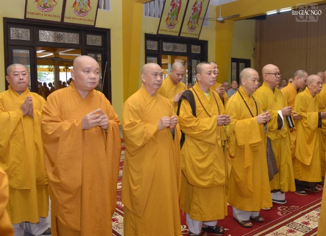 Đức Pháp chủ GHPGVN - Trưởng lão Hòa thượng Thích Trí Quảng quang lâm chứng minh; cùng chư tôn giáo phẩm Trưởng lão Hòa thượng Thích Đức Nghiệp, Phó Pháp chủ kiêm Giám luật Hội đồng Chứng minh, Trưởng môn phái tổ đình Vĩnh Nghiêm; Trưởng lão Hòa thượng Viên Minh, Phó Pháp chủ GHPGVN; cùng chư vị giáo phẩm Ủy viên Thường trực, Thành viên Hội đồng Chứng minh.