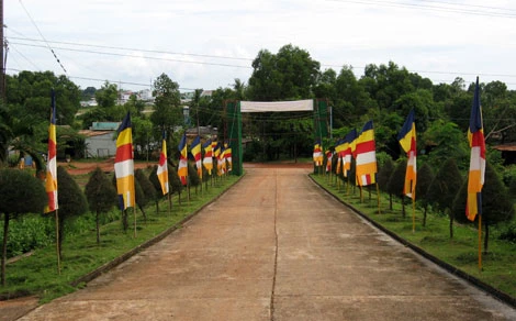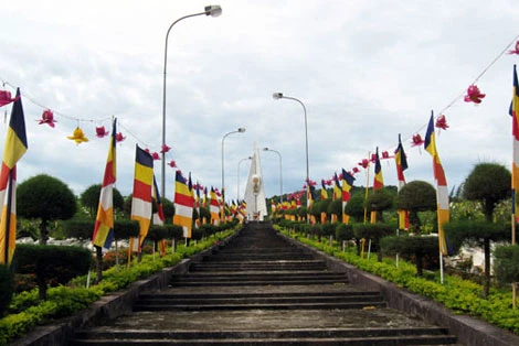 Cờ Phật giáo tung bay dọc đường đi lên nghĩa trang liệt sĩ