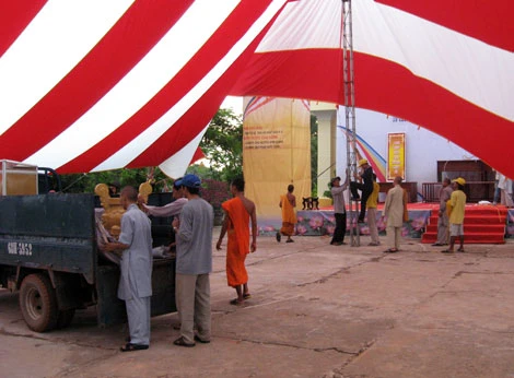 Trong sự tấp nập đó, các công tác chuẩn bị cho Đại lễ diễn ra và đang được gấp rút hoàn thiện. Giác Ngộ Online xin giới thiệu đến quý vị những hình ảnh được truyền về từ Phú Quốc do CTV Minh Triết thực hiện.