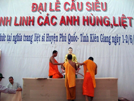 (GNO-Kiên Giang): Trong những ngày này, nghĩa trang Liệt sĩ huyện Phú Quốc - tỉnh Kiên Giang rôn hẳn lên bởi dòng người từ khắp nơi đổ về dự lễ cầu siêu anh linh các anh hùng liệt sĩ tại nơi này do Ban tri sự Tỉnh hội Phật giáo Kiên Giang tổ chức.