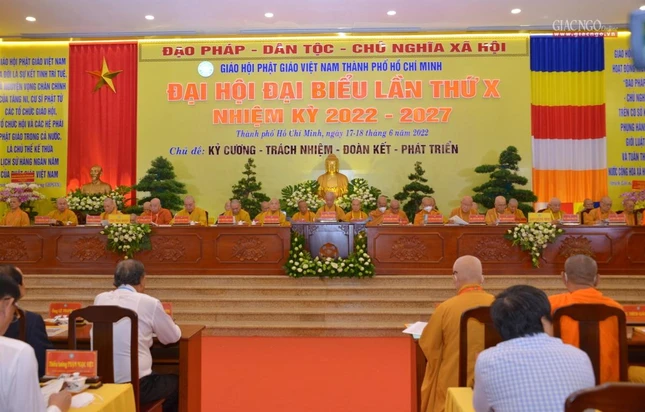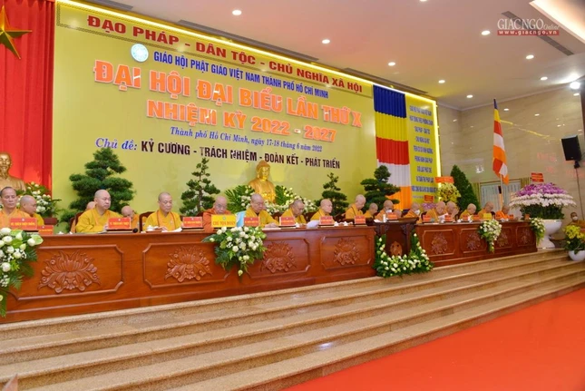 GNO - Sáng nay, 18-6, Đại hội đại biểu Phật giáo TP.HCM lần thứ X thành công viên mãn. Đại hội đã suy cử tân Ban Trị sự GHPGVN TP.HCM nhiệm kỳ 2022-2027.