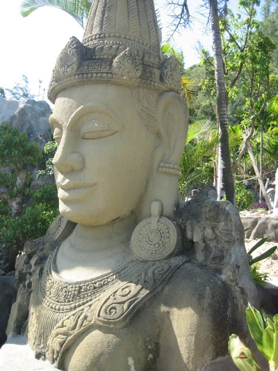 Dạo chơi trong khu vườn tượng, người xem sẽ bắt gặp không gian của văn hóa Việt đậm đà bản sắc dân tộc. Hình ảnh một cậu bé ngồi vắt vẻo trên lưng trâu đọc sách thể hiện tinh thần hiếu học từ ngàn xưa. Chân dung người phụ nữ với tấm áo tứ thân nền nã và chiếc nón quay thao gợi nhớ những làn điệu dân ca ngọt ngào…