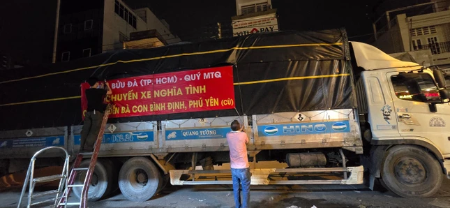 GNO - Tối 22-11, tại chùa Bửu Đà (P.Hòa Hưng, TP.HCM) hơn 45 tấn hàng đã được chư Tăng và Phật tử vận chuyển lên 4 xe tải, xuất phát xuyên đêm để mang những món quà yêu thương của nhà chùa, các mạnh thường quân, người dân TP.HCM đến với bà con vùng lũ lụt tại Phú Yên và Bình Định (cũ).