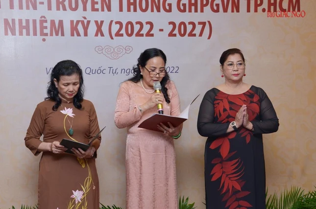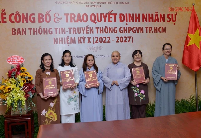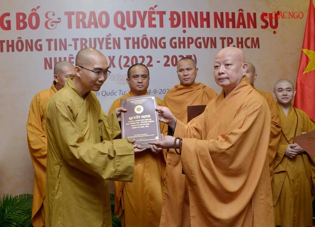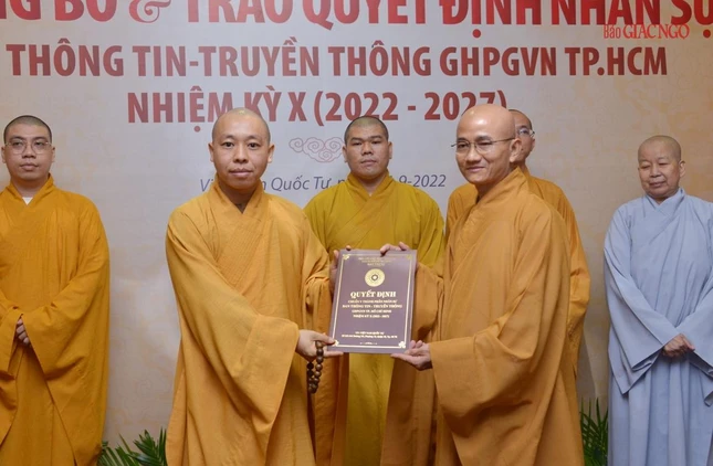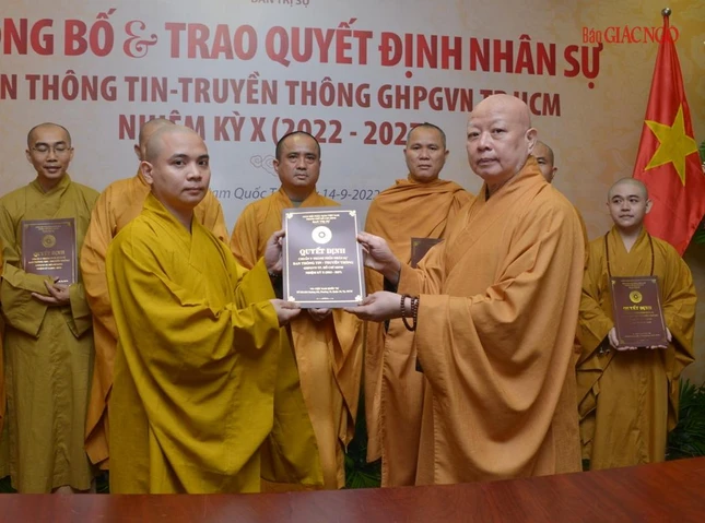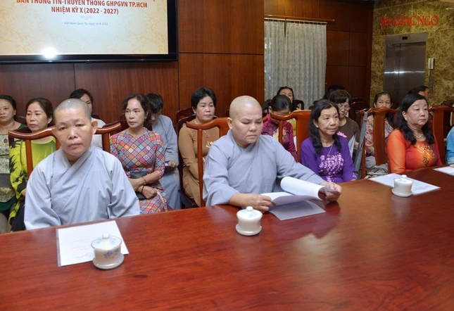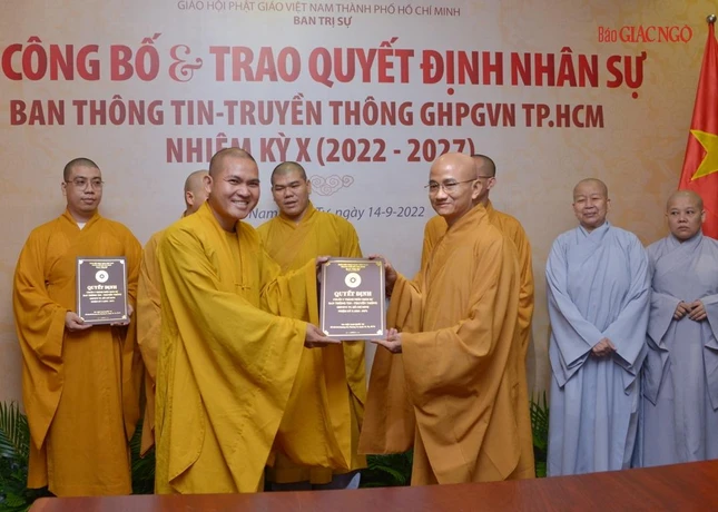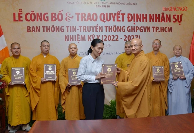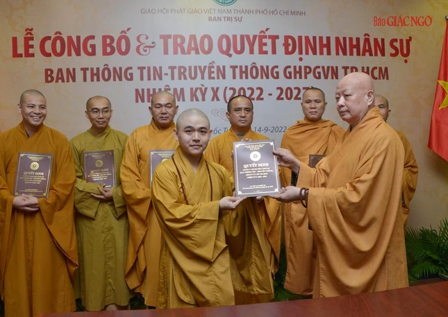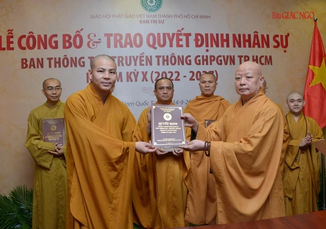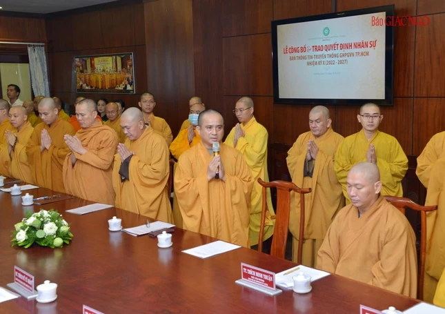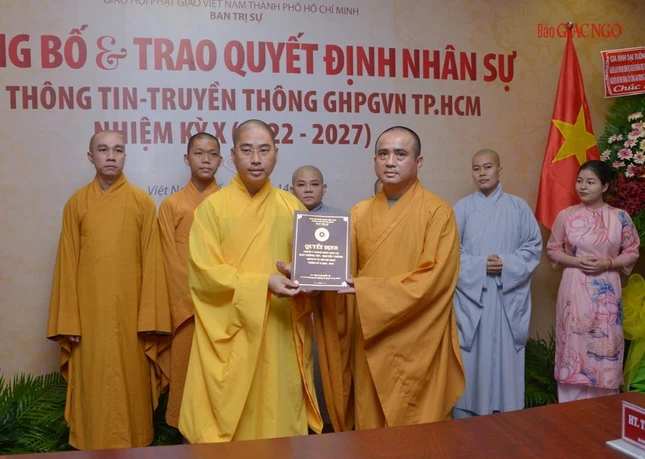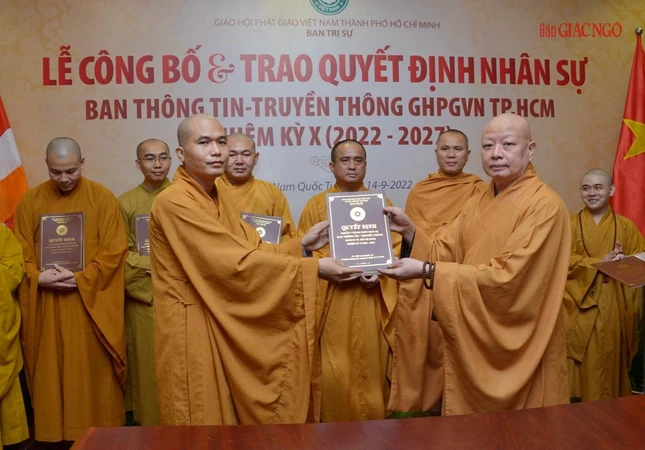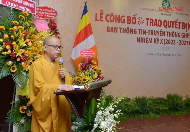 Thay mặt Ban Thường trực Ban Trị sự GHPGVN TP.HCM, Thượng tọa Thích Trung Nguyện, Phó Thư ký kiêm Chánh Văn phòng Ban Trị sự GHPGVN TP.HCM đọc Quyết định số 240/QĐ-BTS của Ban Thường trực Ban Trị sự GHPGVN TP.HCM, ngày 28-7-2022, do Hòa thượng Trưởng ban Trị sự GHPGVN TP.HCM ấn ký chuẩn y thành phần nhân sự của Ban Thông tin - Truyền thông GHPGVN TP.HCM nhiệm kỳ 2022-2027 gồm 43 thành viên, trong đó có 19 ủy viên thường trực và 24 ủy viên.