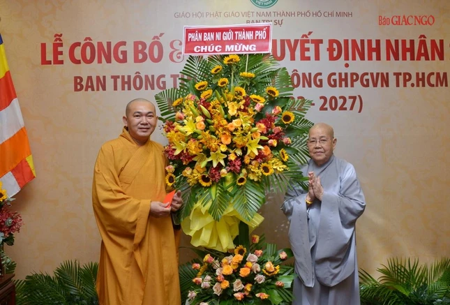 Đón nhận lẵng hoa chúc mừng của Ban Thường trực Ban Trị sự GHPGVN TP.HCM