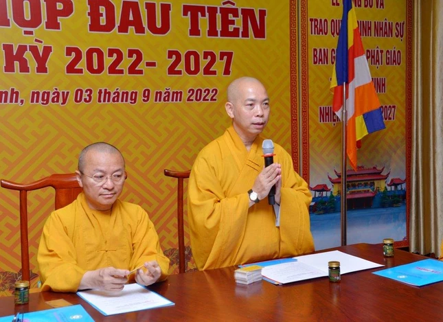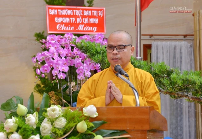 Thay mặt Ban Thường trực Ban Trị sự GHPGVN TP.HCM, Thượng tọa Thích Thiện Quý, Phó ban kiêm Chánh Thư ký Ban Trị sự GHPGVN TP.HCM phát biểu chúc mừng Thượng tọa Thích Quang Thạnh đảm nhiệm cương vị mới, cùng thành viên Ban Giáo dục Phật giáo TP.HCM nhiệm kỳ 2022-2027.